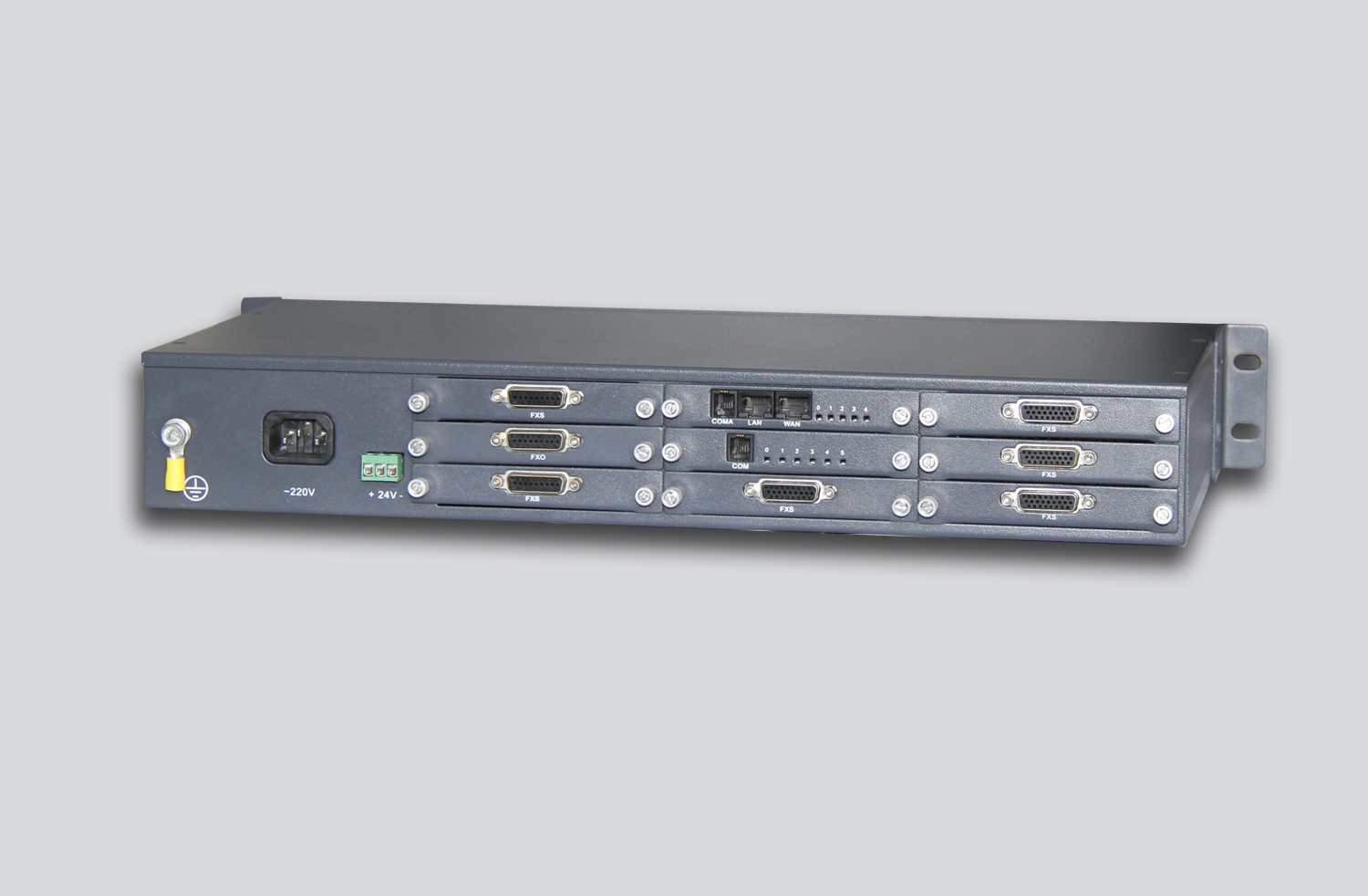 設備由必備的電源、主控、VoIP和可選的用戶接口板EXT、環(huán)路接口板TRK等板卡組成